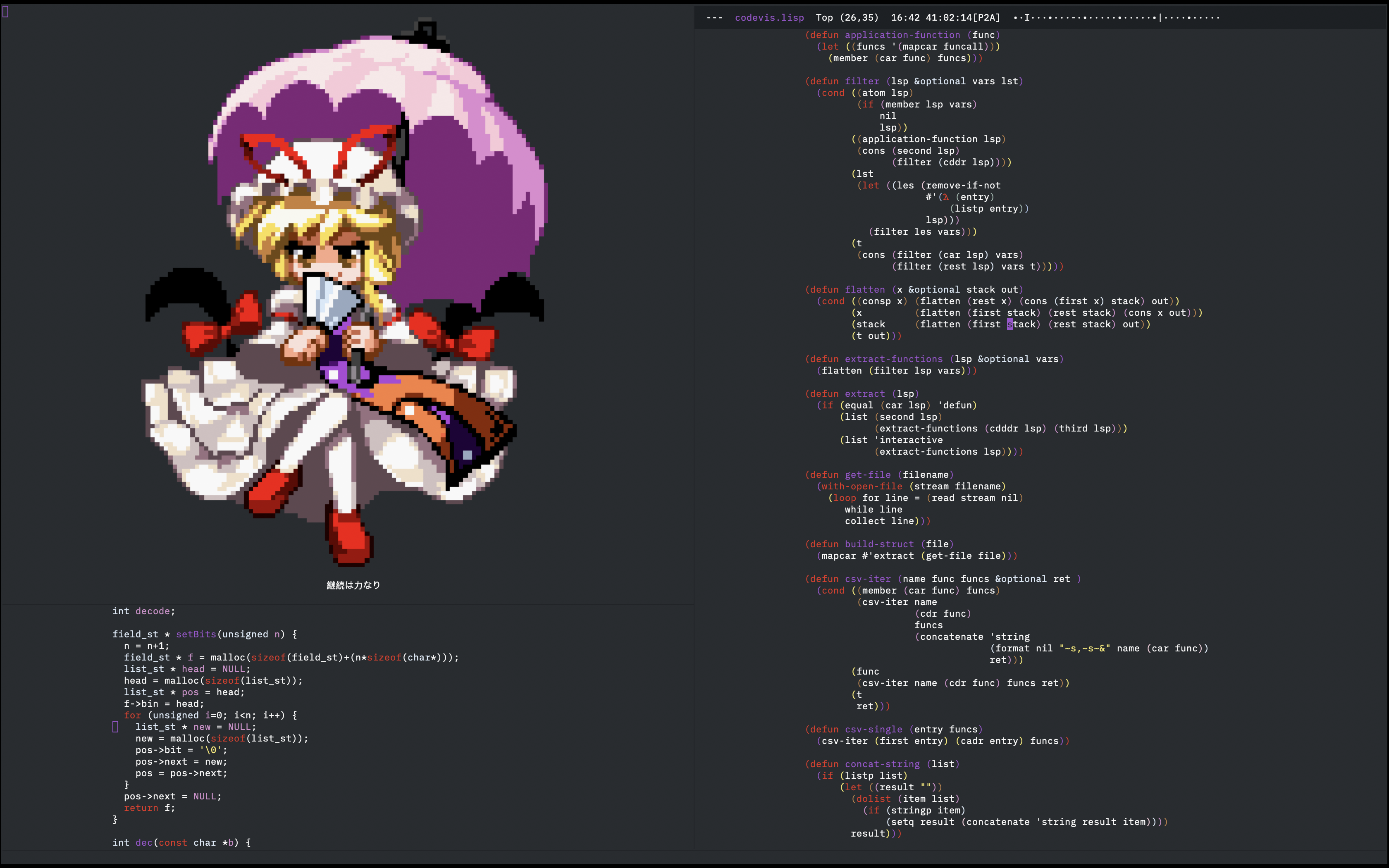 The line at upper right half is her emacs mode line. and she has interesting clock system: