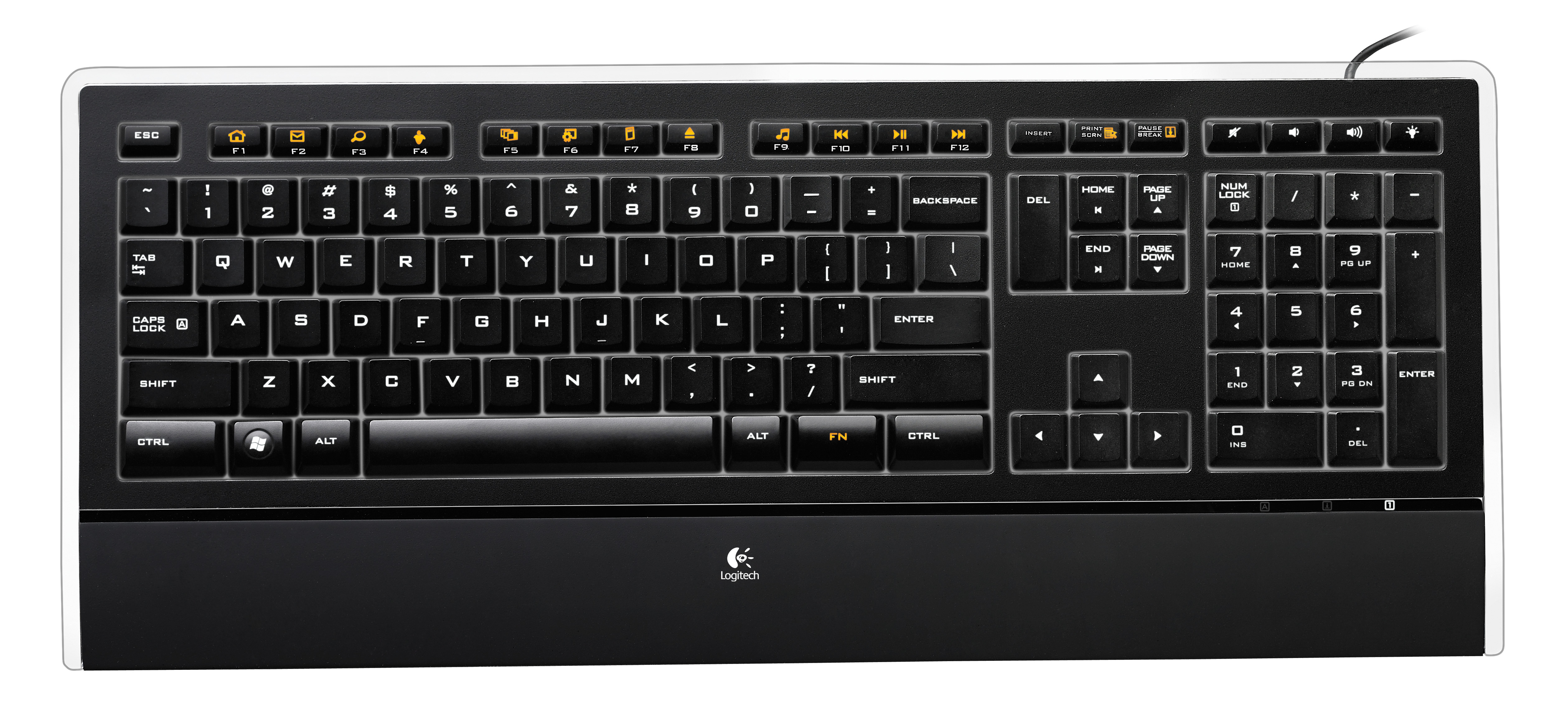 Notice that Logitech uses these symbols for the arrow keys: ◀ ▶ ▲ ▼. However, the up/down triangles are also used for PageUp/PageDown keys.